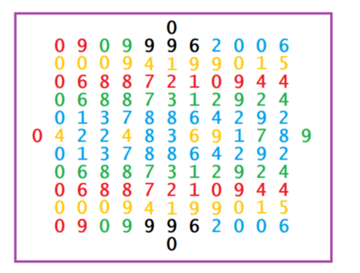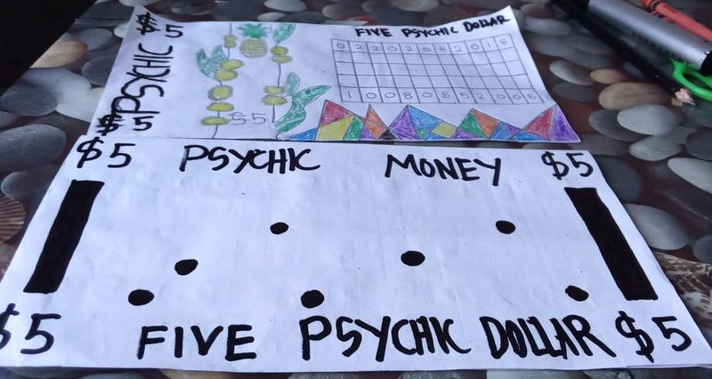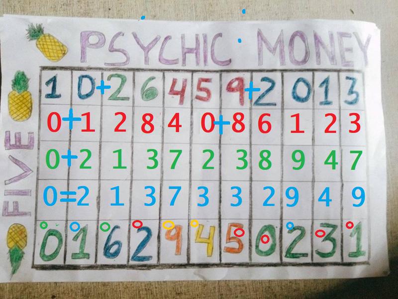 The GOBBLEDYGOO number has been encoded with colors that record the whole sum. Don't include the top central 3 digits. They should actually be 603 but doesn't matter because they are not part of the sum. OK to use on PSYCHIC MONEY...